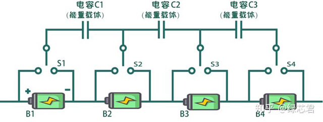另一種專業(yè)叫法是非能量耗散式均衡,也就是主動均衡。其原理為將能量高的電芯內(nèi)的能量轉(zhuǎn)移到能量低的電芯中去。這個碗里裝不下,貢獻(xiàn)出來,轉(zhuǎn)移到?jīng)]有填滿的碗。